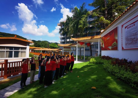 最后,全體黨員莊嚴(yán)舉起右拳,面對(duì)鮮紅的黨旗,重溫入黨誓詞,莊嚴(yán)而又響亮的宣誓聲在“初心園”內(nèi)回響著。