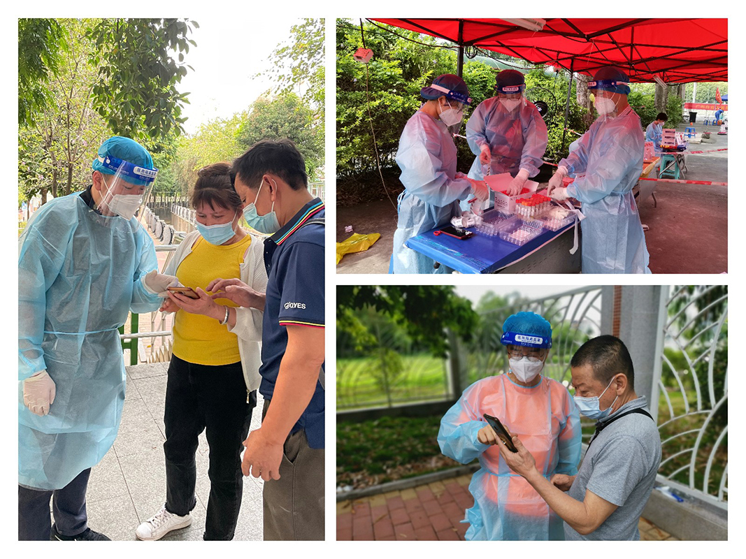 4月12日,為配合白云山藥廠社區(qū)做好第四輪全員核酸檢測(cè),總廠黨委聞令而動(dòng),“叮叮”,早上未到上班時(shí)間,一條召集令出現(xiàn)在總廠黨務(wù)群。各黨支部火熱響應(yīng),不到1小時(shí),一支45人的黨員突擊隊(duì)集結(jié)完畢。上午9點(diǎn),第一批志愿者已火速出征,到達(dá)倚綠公園核酸檢測(cè)現(xiàn)場(chǎng)。