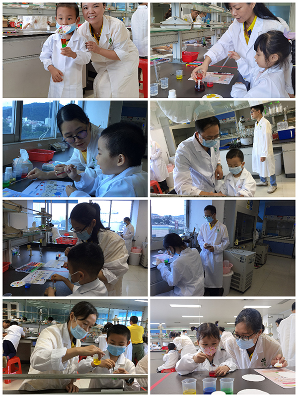 隨后,孩子們參觀了制劑、分析和原料實(shí)驗(yàn)室。在原料藥實(shí)驗(yàn)室,孩子們開啟了一次神奇的科學(xué)實(shí)驗(yàn)之旅——制作彩虹雞尾酒科學(xué)小實(shí)驗(yàn)。他們認(rèn)真地聽完實(shí)驗(yàn)老師的講解,在家長的細(xì)心引導(dǎo)下,色彩繽紛的彩虹雞尾酒完美地呈現(xiàn)在了小小實(shí)驗(yàn)員的手中??粗约河H手完成的美麗作品,每個小朋友的眼睛里都閃爍著自豪的光芒。