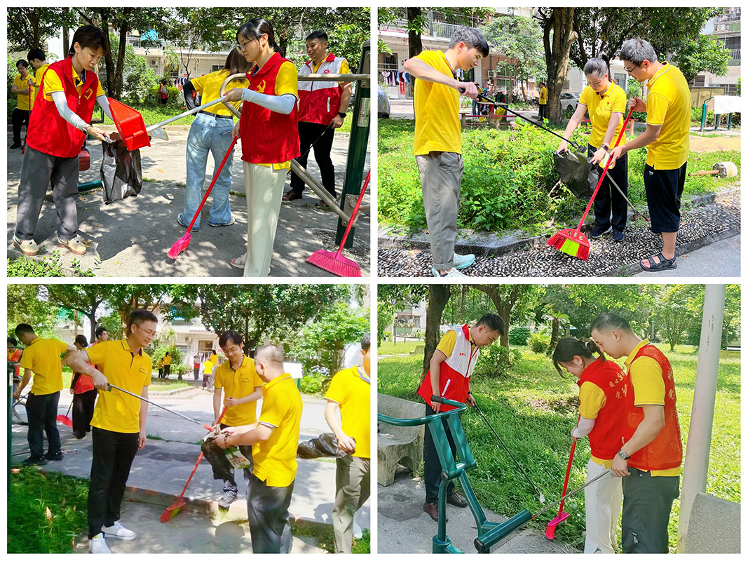 為深入學習貫徹習近平生態(tài)文明思想,推動黨員在綠美廣州生態(tài)建設(shè)中常態(tài)化、長效化發(fā)揮作用,慰問結(jié)束后,黨員志愿者們身穿紅馬甲,手拿夾子、掃帚和垃圾袋,深入到小區(qū)的每個角落,對小區(qū)公共活動區(qū)域的落葉和草地內(nèi)的糖果紙、煙蒂、廢棄物等垃圾進行了地毯式清掃,還小區(qū)居民一個美好的社區(qū)環(huán)境,提升大家的居住幸福感。
