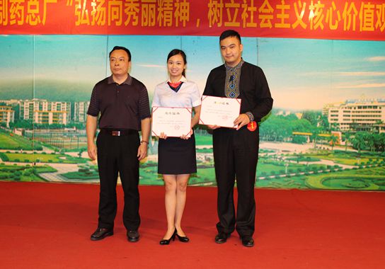 廣藥集團組織人事部主管熊炬為獲演講比賽三等獎的人員頒獎