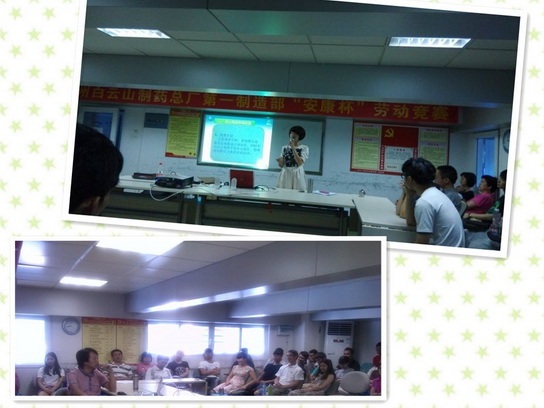 2014年7-8月,白云山制藥總廠第一制造部在工會(huì)領(lǐng)導(dǎo)的關(guān)心和大力支持以及在門領(lǐng)導(dǎo)和廣大員工的共同努力下,圓滿舉辦了系列“安康杯”勞動(dòng)競(jìng)賽活動(dòng),包括QC小組活動(dòng)成果發(fā)表、疾病相關(guān)保健知識(shí)講座和安全生產(chǎn)知識(shí)培訓(xùn)。
