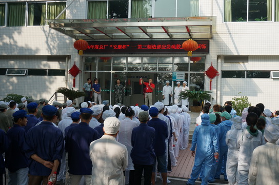 擔(dān)負(fù)著這么重要的產(chǎn)品的生產(chǎn),安全生產(chǎn)的重要性不可忽視,為了營造良好的安全生產(chǎn)環(huán)境,構(gòu)建一個平安和諧的總廠,第三制造部在9月6號開展了一場別開生面的應(yīng)急疏散及消防器材演練活動