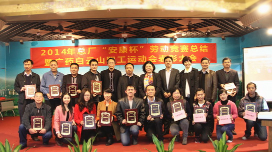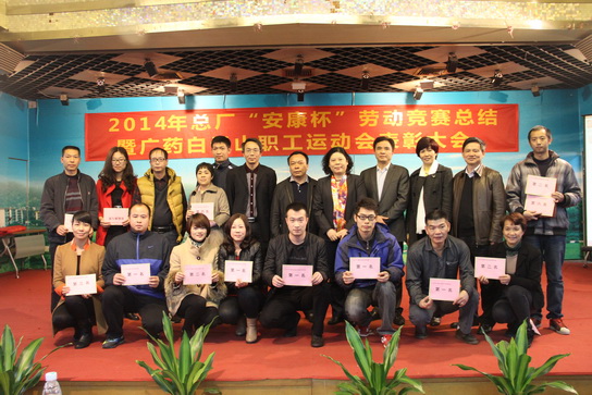 2014年12月26日,白云山制藥總廠在辦公大樓六樓會議室召開2014年總廠“安康杯”勞動競賽暨職工運動會表彰大會。廠長朱少璇、黨委書記周志魁、副廠長鄭麗真、副廠長劉漢明、總工程師許春江等廠領(lǐng)導(dǎo)及獲獎?wù)?、員工代表近120名出席了表彰大會,廠領(lǐng)導(dǎo)為獲獎集體及個人頒獎。會議由紀委書記、工會主席許鎮(zhèn)江主持。