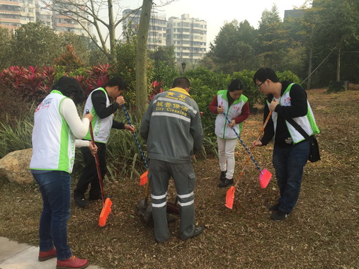 2015年2月12日,白云山總廠團(tuán)委積極響應(yīng)團(tuán)市委“打造干凈整潔平安有序美麗家園,積極投身城市文明建設(shè)”的號召,組織了15名團(tuán)員青年志愿者聯(lián)合白云山化學(xué)藥廠團(tuán)委、同和街道辦團(tuán)工委在陳田花園開展“美麗家園·青年新春志愿行”清潔大掃除活動。