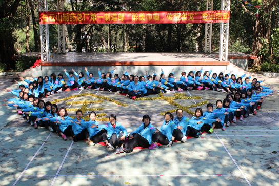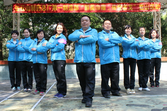 大家在有節(jié)奏的音樂聲中,鼓足氣,你追我趕中到達了集合地點明珠樓。碩大的彩帶制“金戈”前,一部女職工高舉“白云山制藥總廠第一制造部‘醉美巾幗傳奇金戈’登山活動”橫幅進行了合影。經(jīng)過精心策劃,我們擺出了各種有意義的造型,包括“巾幗英雄 用心造金戈”、“勇往直前”、“托起金戈的明天”等等,旨在體現(xiàn)在總廠的領導下,一部員工上下一心造“金戈”,助沖“金戈”銷量節(jié)節(jié)高!