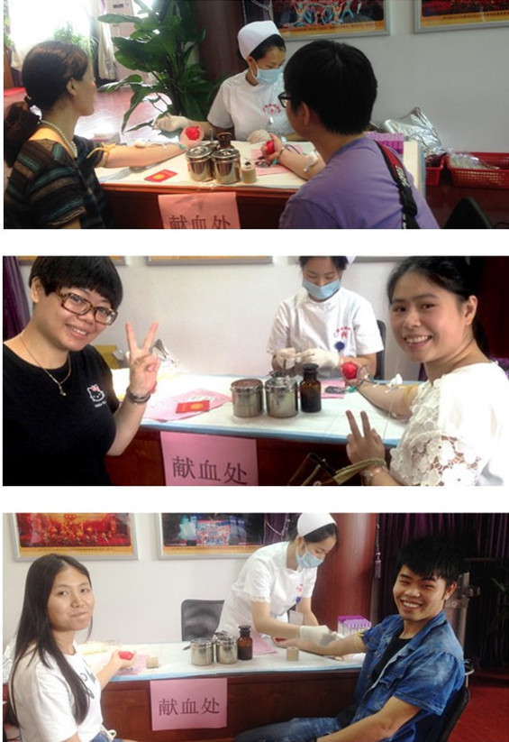 上午8:40,在血站人員來臨之際,38名志愿獻(xiàn)血的員工早已到達(dá)獻(xiàn)血集中地點(diǎn)——排練廳等候。在現(xiàn)場(chǎng)工作人員協(xié)助下,填表、排隊(duì)登記、檢查血型、抽血,一切井然有序??倧S每個(gè)部門員工都積極參與,有來自制造部的,有來自倉(cāng)儲(chǔ)部的,也有來自質(zhì)量管理部的……獻(xiàn)血隊(duì)伍中,有第一次獻(xiàn)血的員工,既緊張又興奮,也有曾多次獻(xiàn)血的員工,神態(tài)自若;面對(duì)抽血,大家談笑風(fēng)生,現(xiàn)場(chǎng)的氣氛愉快而輕松?,F(xiàn)場(chǎng)工作人員為每一位獻(xiàn)血員工送上溫暖的葡萄糖水和蛋糕,叮囑每一位獻(xiàn)血員工,獻(xiàn)血后要多喝水、多注意休息,讓愛心也溫暖著每一位獻(xiàn)血員工。活動(dòng)現(xiàn)場(chǎng)更準(zhǔn)備了折疊床、急救箱等,以備急需之用。看著從手臂中不斷流出的殷紅獻(xiàn)血,我們都感到無比的高興和自豪,我們鮮血可以挽救處于危急的生命,每人獻(xiàn)出一滴血,將匯成生命的海洋。