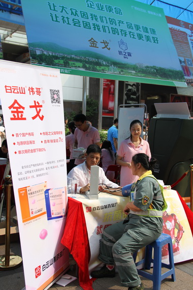 2016年9月24日,由市委宣傳部、市政研會(huì)、市企業(yè)文化協(xié)會(huì)組織開展的“廣州市最美企業(yè)員工” 宣傳暨企業(yè)文化示范基地服務(wù)日活動(dòng)在北京路商業(yè)街舉行。廣州市委宣傳部和市有關(guān)部門領(lǐng)導(dǎo)以及廣州市22家企業(yè)文化示范基地單位參加活動(dòng)。白云山制藥總廠在廠長朱少璇、黨委書記周志魁的支持下,由廠長辦公室廖炎輝主任帶領(lǐng)團(tuán)隊(duì)積極參與現(xiàn)場服務(wù)活動(dòng),支持社會(huì)公益、推廣“愛心文化”。這是白云山制藥總廠連續(xù)第三年參加此活動(dòng)。廣藥集團(tuán)黨委副書記、紀(jì)委書記冼家雄出席活動(dòng)并親自到總廠攤位指導(dǎo)慰問,鼓勵(lì)總廠做好市民服務(wù)活動(dòng)。