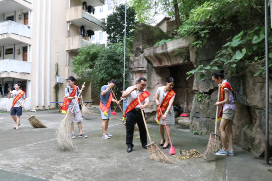 總廠職工在總廠青年之家和諧家園門口進行清掃衛(wèi)生