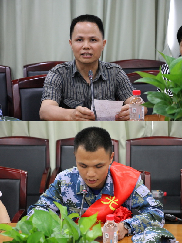 吳衛(wèi)東父親感謝總廠并表示支持吳衛(wèi)東參軍入伍;吳衛(wèi)東宣讀入伍決心書