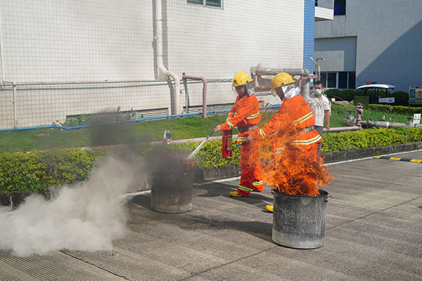 為進一步檢驗突發(fā)事件隨事故狀態(tài)擴大化需逐步升級的應(yīng)急救援預(yù)案,本次演練設(shè)置了第二項科目:因酒精泄漏不慎引發(fā)火情;現(xiàn)場作業(yè)人員使用沙及干粉滅火器或滅火毯對初期火災(zāi)開展撲救等應(yīng)急措施,保衛(wèi)部應(yīng)急人員在接到報警后第一時間攜帶消防器械趕赴現(xiàn)場,做好警戒,維持現(xiàn)場秩序,協(xié)助撲滅火情,使突發(fā)事故得到了有效控制。