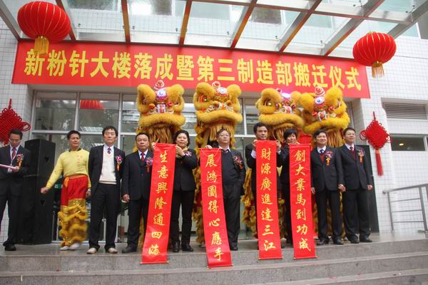 2013年12月16日,廣州白云山制藥總廠(chǎng)舉行新粉針大樓落成暨第三制造部搬遷儀式。白云山制藥總廠(chǎng)常務(wù)副廠(chǎng)長(zhǎng)王文楚、黨委書(shū)記周志魁等廠(chǎng)領(lǐng)導(dǎo)及各部門(mén)負(fù)責(zé)人、員工代表約60人參加儀式?;顒?dòng)由白云山總廠(chǎng)生產(chǎn)運(yùn)營(yíng)中心總經(jīng)理許春江主持。儀式結(jié)束后,參加活動(dòng)人員參觀(guān)了新粉針大樓并進(jìn)行了座談。