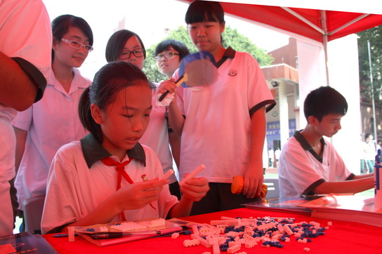 學(xué)生積極參與抗之霸商標積木游戲