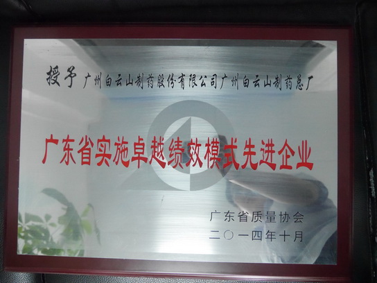 廣州白云山制藥總廠榮獲“廣東省實(shí)施卓越績效模式先進(jìn)企業(yè)”