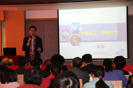 廣州市總工會肖旭老師作“關愛員工、感恩企業(yè)”的專題培訓