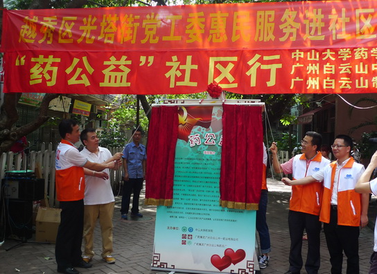 6月2日上午,白云山制藥總廠聯(lián)合白云山中一藥業(yè)、中山大學(xué)藥學(xué)院開展的“藥公益”社區(qū)行——安全合理用藥活動(dòng)在越秀區(qū)光塔街正式啟動(dòng)。白云山制藥總廠黨委書記周志魁、廣州白云山中一藥業(yè)黨委副書記薛敏、中山大學(xué)藥學(xué)院黨委副書記丁小球出席了本次活動(dòng)并為公益活動(dòng)項(xiàng)目揭幕。