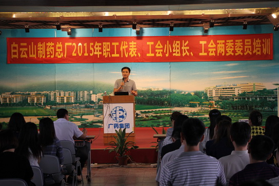 2015年10月30日,白云山制藥總廠工會組織年度的職工代表、工會小組長及工會兩委委員培訓(xùn)活動,活動邀請了市總工會紀(jì)曉輝部長做《認(rèn)識工會》的專題培訓(xùn)課程??倧S黨委書記周志魁、總工程師許春江出席培訓(xùn)會議,會議共約160人參加。紀(jì)委書記、工會主席許鎮(zhèn)江主持會議活動。