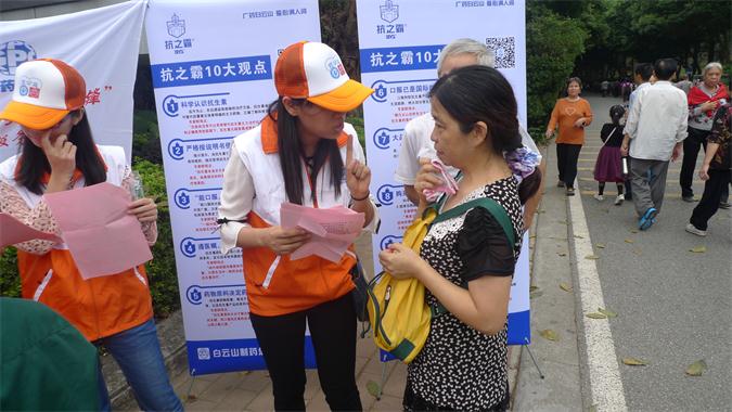 為向社會大眾樹立安全健康合理用藥觀念,宣傳廣藥白云山的品牌及愛心文化,11月21日上午,總廠黨委及團(tuán)委繼在6月份在越秀區(qū)光塔街“藥”公益活動后,再次聯(lián)合中一、白云山醫(yī)院及中山大學(xué),將“藥”公益活動帶到了白云山風(fēng)景區(qū),通過發(fā)放《安全合理用藥手冊》、免費(fèi)量血壓、與群眾進(jìn)行有獎問答等方式向大家普及安全合理用藥知識。