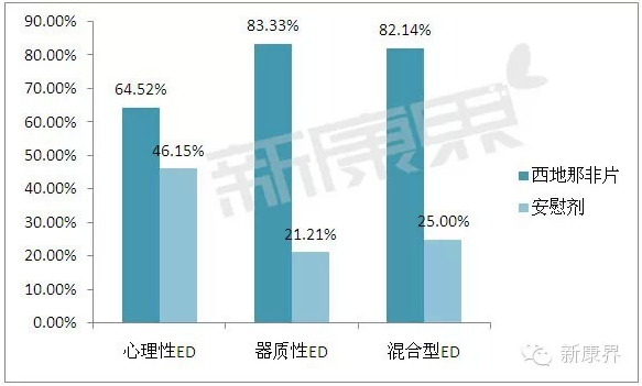 治療不同病因ED的有效率